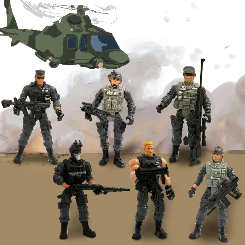 • Super Value 6 Pack Army Men Set: Each Military Men playset is with unique weaponmore realistic army men. Kids can paly with thier friends and have fun.