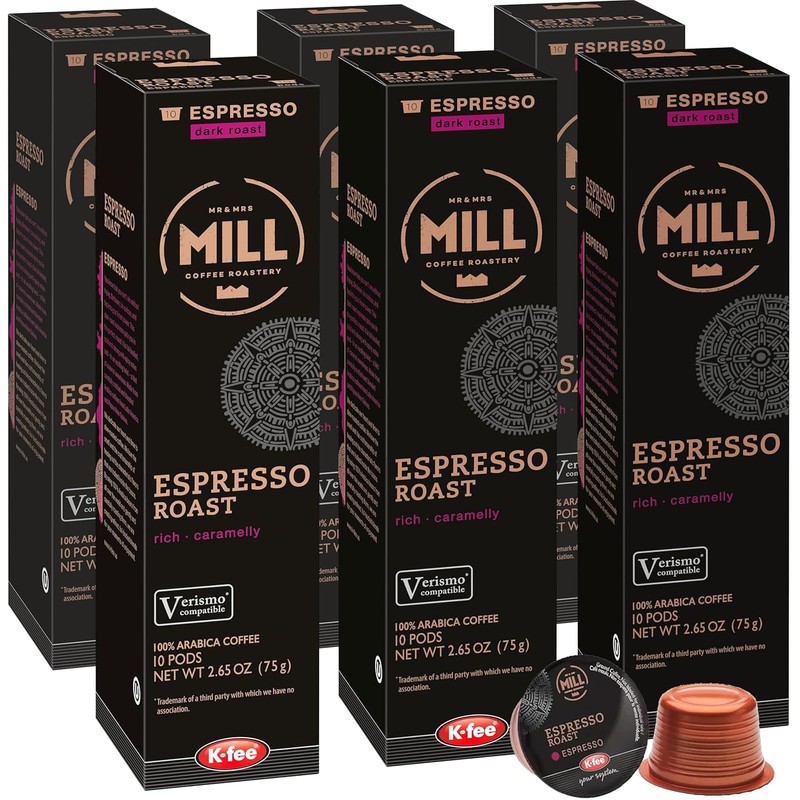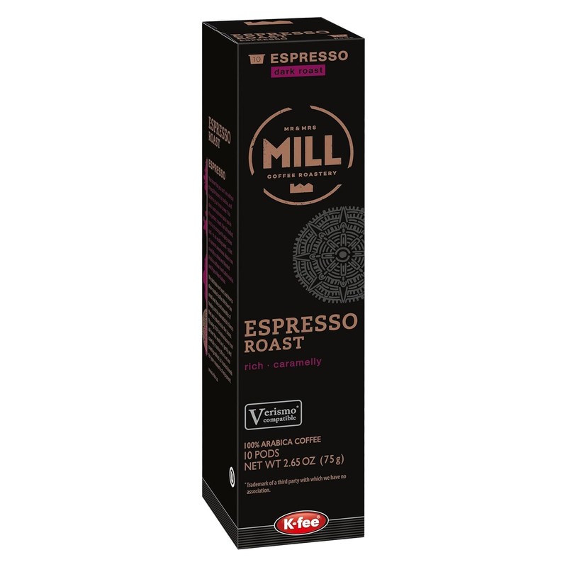 - MR & MRS MILL DARK ROAST ESPRESSO K-fee AND VERISMO* COMPATIBLE CAPSULES Hand-selected, from all regions of the world, Mr & Mrs Mill brings you exceptional flavor and high quality in every sip. Discover and indulge in unique coffee creations that will invigorate every sense.