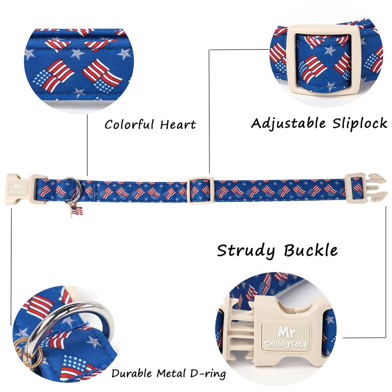 MR.CHUBBYFACE American Flag Dog Collar, 4th of July Puppy Collar with Plastic Buckle, Patriotic Puppy Collar for Small Medium Large Dogs