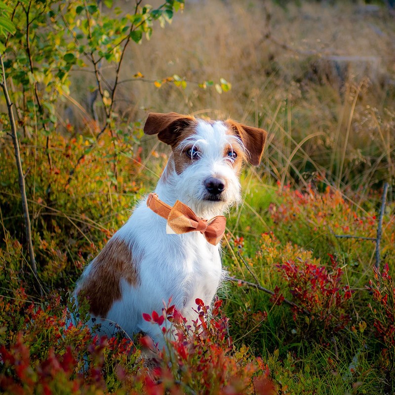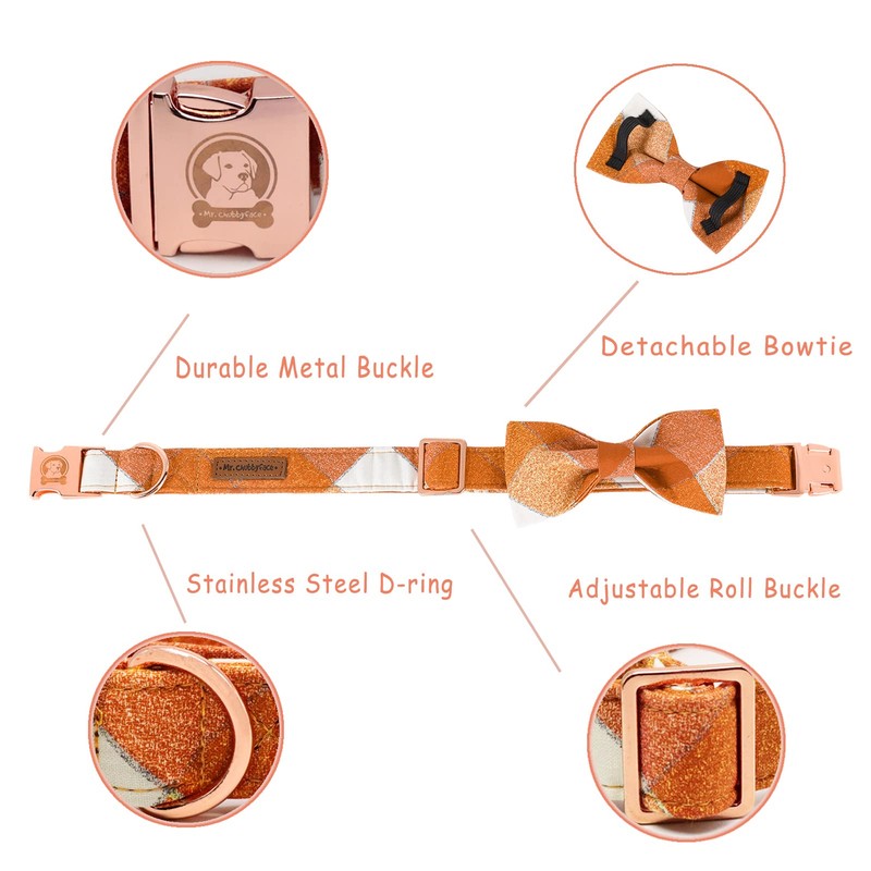 Mr.Chubbyface Dog Collar with Bow Tie, Orange Grid Adjustable Bowtie Pet Collars, Girl Dog Collars for Small Medium Large Dogs
