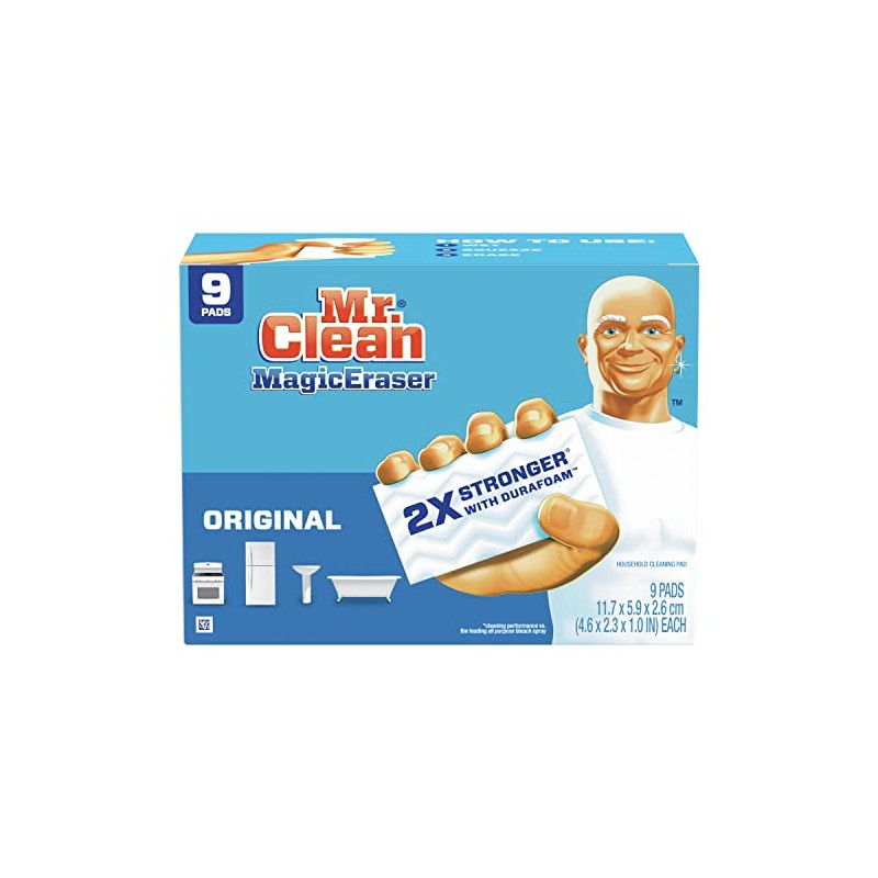 Mr. Clean MAGIC Eraser original erases marks on walls, floors and more. To