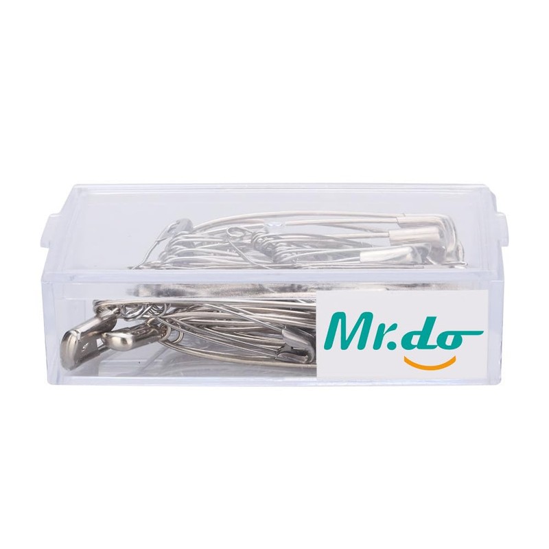 Mr.do Safety Pins 50 Pieces in 4 Different Sizes with Box Finger Guard Silver Stainless Steel