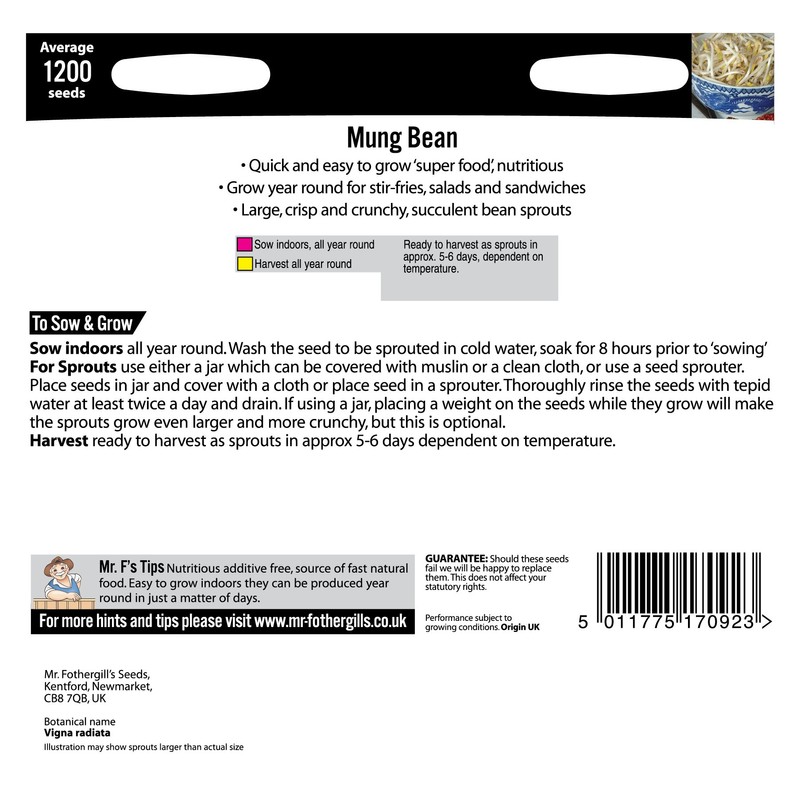 Mr Fothergill?s Seeds Ltd 19230 Vegetable Seeds, Mung Bean