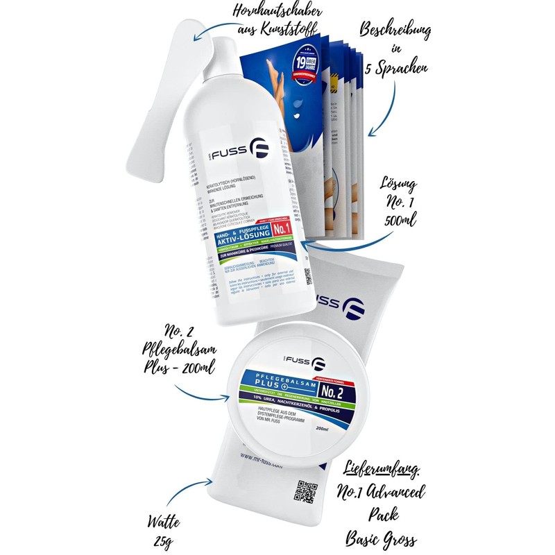 - MF4001 | Mr. Foot No. 1 - 500 ml active remover solution advanced pack basic without dyes or fragrances. Box contents: solution, 200 ml balm, 25 g cotton, hard skin scraper made of plastic - see display chart