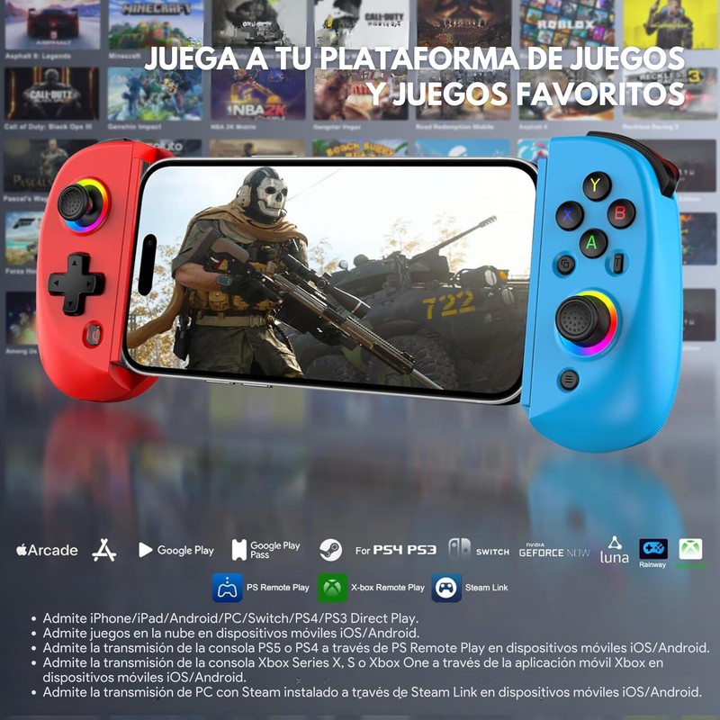 - Iluminación RGB: Personaliza tu mando con efectos de iluminación RGB para una experiencia de juego inmersiva.