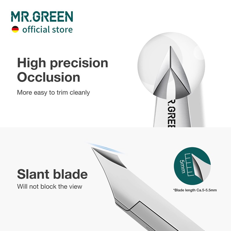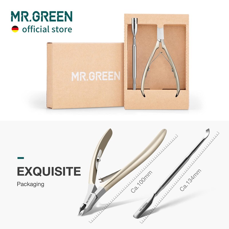 MR.GREEN Cuticle Scissors, Stainless Steel Sharp Cuticle Nippers with Pusher for Salon and Home Manicure & Pedicure Set (Nickel Pearl + Pusher)