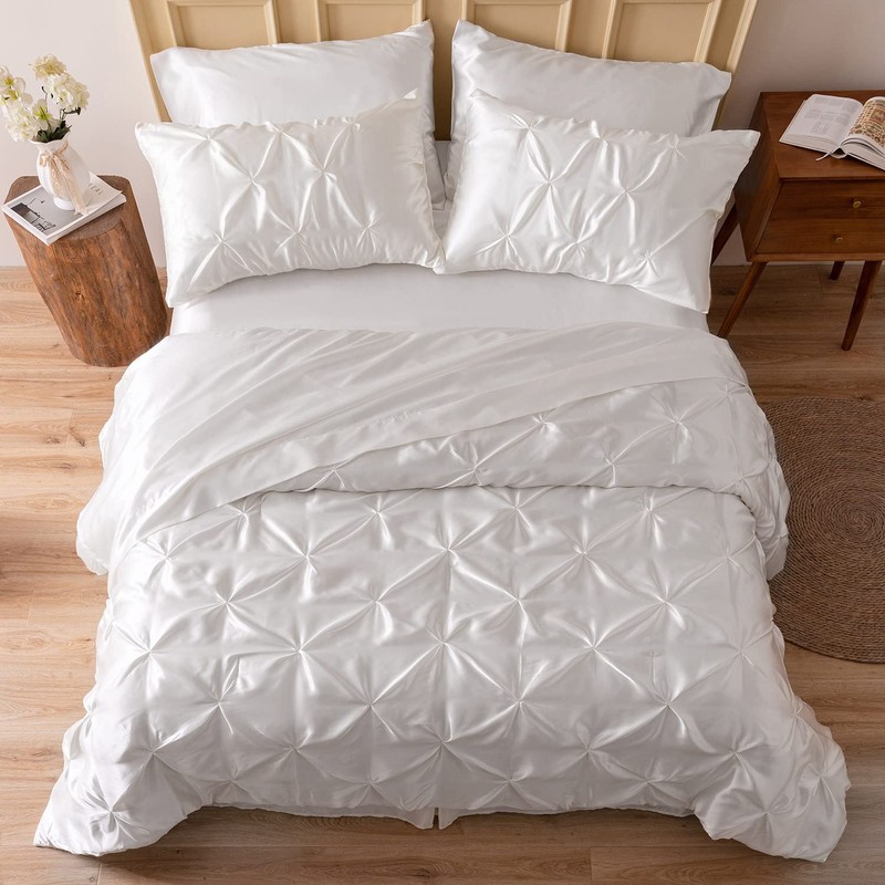 - Skin and Hair are Refreshed - The high-quality satin fabric is silky smooth, keeping skin hydrated and dry while reducing the appearance of wrinkles over time. The satin finish also keeps hair silky and shiny by reducing friction and pulling and preventing tangles and drying. The complete satin comforter set provides all-round care for hydrated skin and beautiful hair while you sleep.