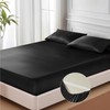 MR&HM Satin Fitted Sheet & Pillowcase Set King Size, 3-Piece Silky Soft Bedding with 15" Deep Pocket, Reinforced Elastic Corner Straps to Prevent Slipping Off Mattress, Black