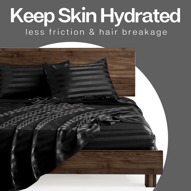 MR&HM Satin Pillowcase for Hair and Skin, Silk Satin Pillowcase 2 Pack, Standard Size Pillow Cases Set of 2, Silky Pillow Cover with Envelope Closure (20x26, Black Striped)