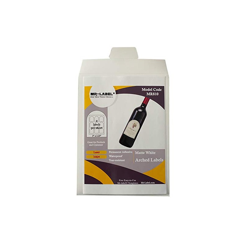 Mr-Label 3" x 2.25" Arched White Sticker Label - Waterproof and Tear-Resistant - for Inkjet & Laser Printer - for Glass Bottles | Jars | Plastic | Metal | Paper (10 Sheets Total 90 Labels)