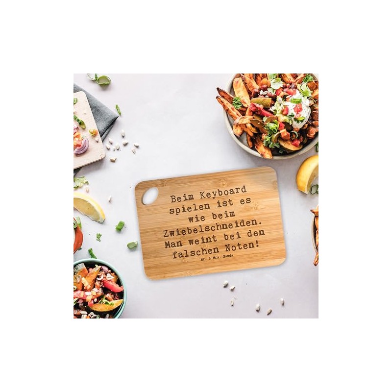 Experience the attention to detail with the bamboo chopping board from Mr. & Mrs. Panda, uniquely engraved with stunning motifs and inspirational sayings. With its dimensions of 225 mm x 145 mm x 10 mm and a weight of 152 g, this wooden board is both stable and visually a highlight in your kitchen. Made from the best bamboo wood, it promises durability and is ideal as a chopping board or breakfast board. The meticulous craftsmanship and durable laser engravings make it an essential accessory for anyone who appreciates a personal touch in their kitchen. Please refer to the care instructions to maintain the board in its high quality: it is only hand wash and not suitable for the dishwasher.