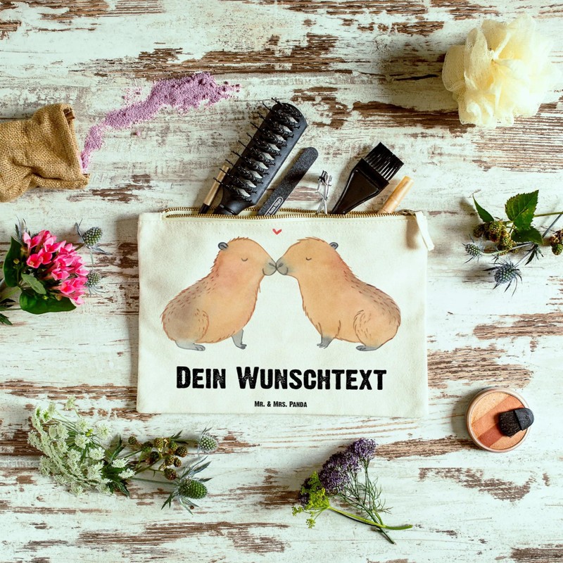 Mr. & Mrs. Panda Capybara Love Make-Up Bag, White Personalised, Hand Drawn
