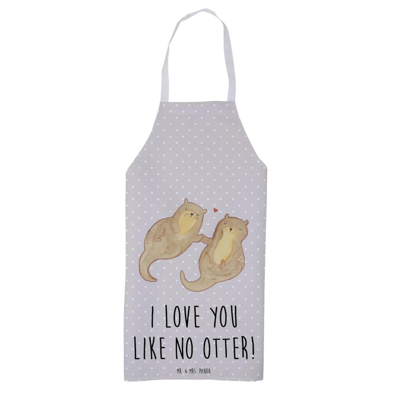 Mr. & Mrs. Panda Cooking Apron Otter Hands Holding – Gift, Otter Sea Otter Lake Otter, Romantic, Bib Apron, Fish Otter, Baking Apron, Sea Otter, gray