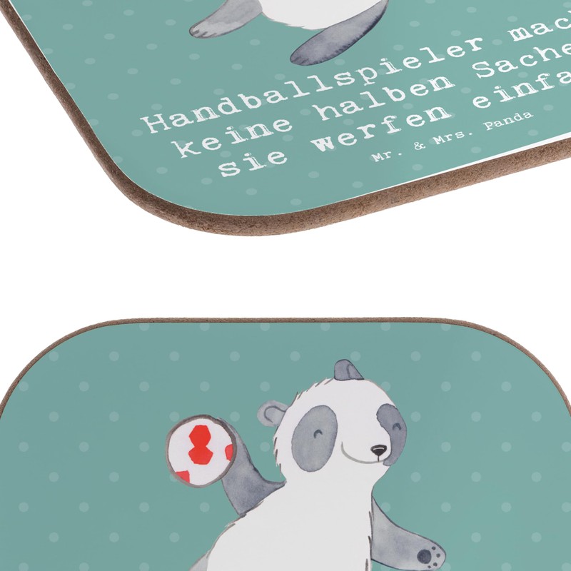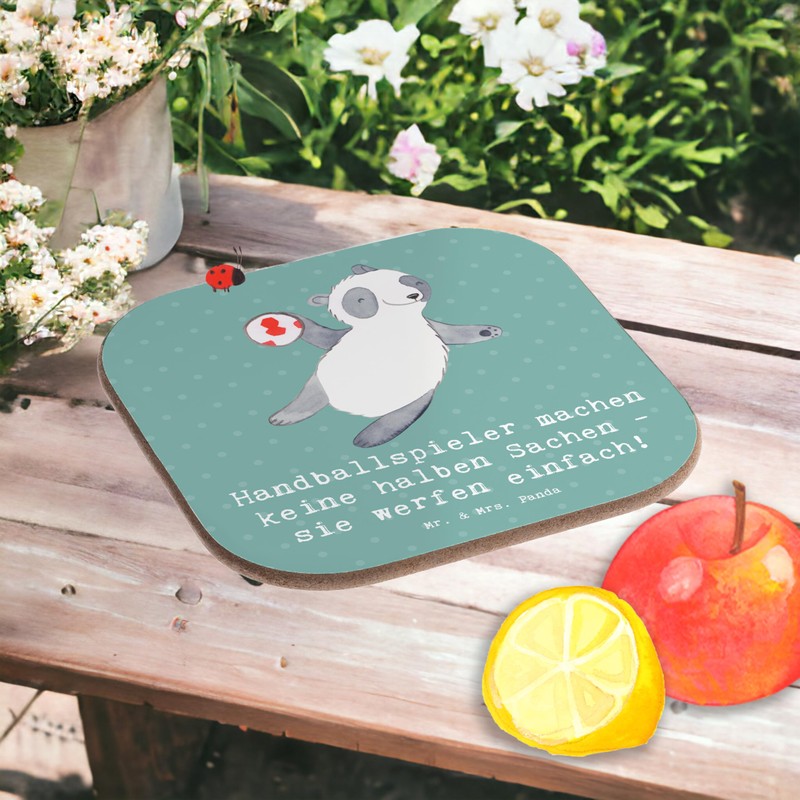 Mr. & Mrs. Panda Flaschenuntersetzer Handball Wurf - Geschenk, Humor, Aktivität, Getränkeuntersetzer, Handball Leidenschaft, Untersetzer für Gläser,