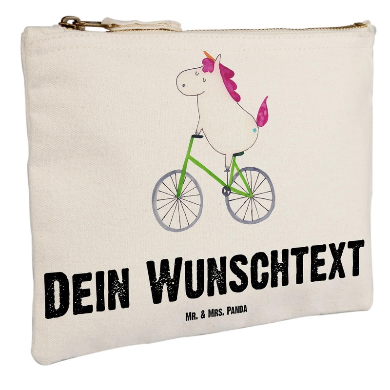 Mr. & Mrs. Panda Make-up bag unicorn cyclists, White Personalised, M, Hand Drawn
