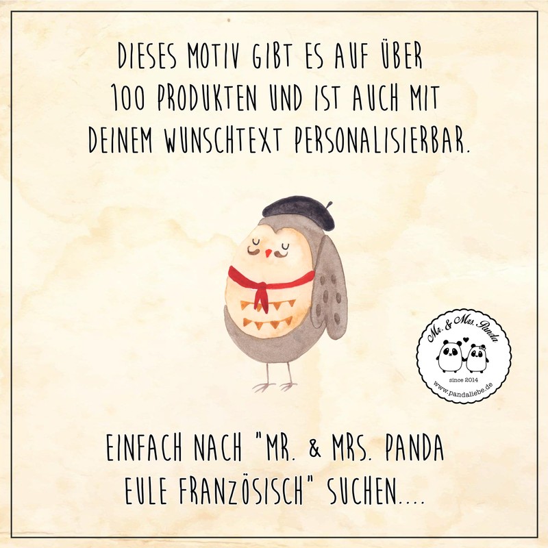 Willkommen in der Welt von Mr. & Mrs. Panda, wo das Flattern kleiner Flügel und das leise Wispern des Waldes zum Leben erweckt wird. Unsere Eulen Kollektion ist eine Ode an die nächtlichen Hüter des Waldes, sorgfältig handgezeichnet und mit positiven Botschaften versehen, die das Herz erwärmen. Diese Sammlung ist nicht nur eine Darstellung der Schönheit und Weisheit der Eulen, sondern auch ein Symbol für Glück und Geborgenheit. Jeder Artikel in dieser Kollektion ist ein Kunstwerk für sich, das darauf wartet, deine Geschichte zu erzählen. Perfekt für jeden, der sein Leben mit ein wenig Zauber und sehr viel Liebe bereichern möchte. Mach dein Zuhause zu einem Ort der Freude und Inspiration mit diesen zauberhaften Eulen-Motiven, die auf hochwertigen Produkten verewigt sind.
