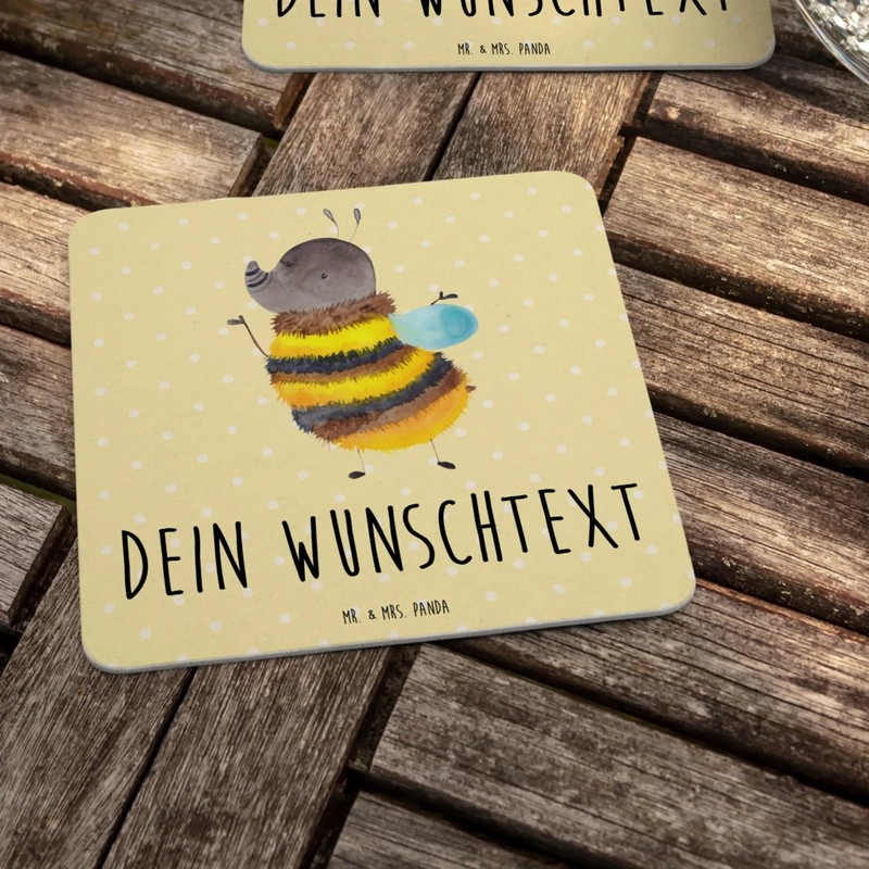 Mr. & Mrs. Panda Personalisierter Bierdeckel Hummel flauschig 100er Set - Personalisierte Geschenke, Natur, Gute Laune, Blume, Bierdeckel mit Namen,