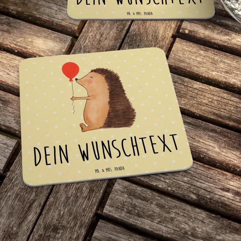 Mr. & Mrs. Panda Personalisierter Bierdeckel Igel Luftballon 100er Set - Personalisierte Geschenke, Bierdeckel mit Namen, Bierdeckel personalisiert,
