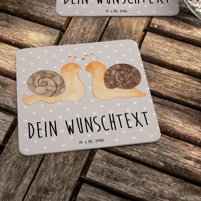 Mr. & Mrs. Panda Personalisierter Bierdeckel Schnecken Liebe 25er Set - Personalisierte Geschenke, verliebt, Tischdeko personalisiert, Paar,