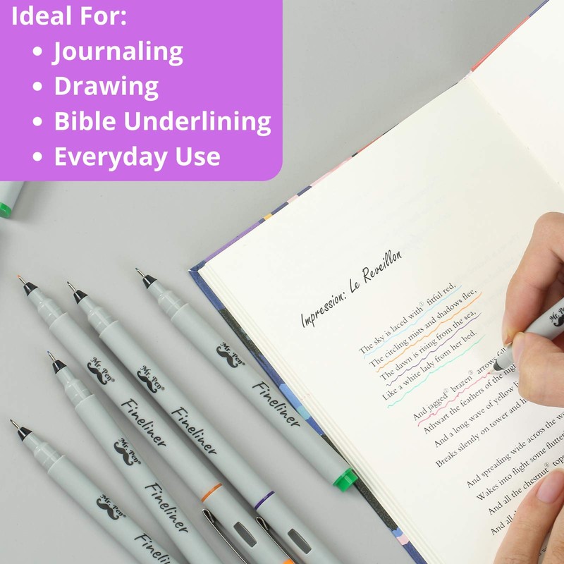 Mr. Pen (ミスターペン) 細字ペン 0.2mm 6本パック 極細 聖書にじみなし アソートカラー アートペン 描画/スケッチ/ライナー用細字