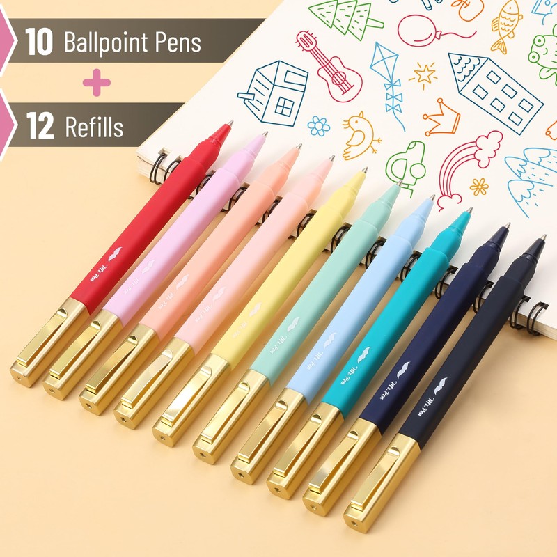 Mr. Pen- Aesthetic Pens, 10 Pack, Colorful Ink with Case and 12 Refills, Fast Dry, No Smear Bible Pens No Bleed Through, 0.7mm Fine Point Pen, Ballpoint Pens Ballpoint, Pens for Note Taking