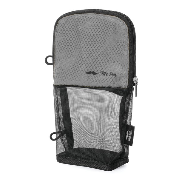 Mr. Pen- Cute Pencil Case Pouch, Sit & Lay Mesh-View Design, Black & Gray, Interior Pocket & 2 Elastic Binder Loops, Standing Pencil Case for Girls and Boys