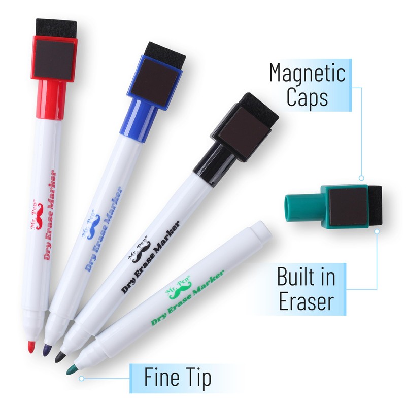 - The magnet allows the markers to be right on the board and never get lost. With the cap eraser, there is no need for a separate eraser for minor mistakes.