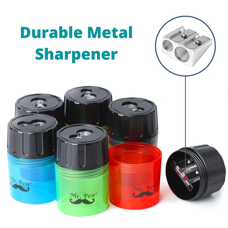 Mr. Pen Handheld Manual Pencil Sharpener with 2 Sharpening Holes and Screw-on Lid, Pack of 6