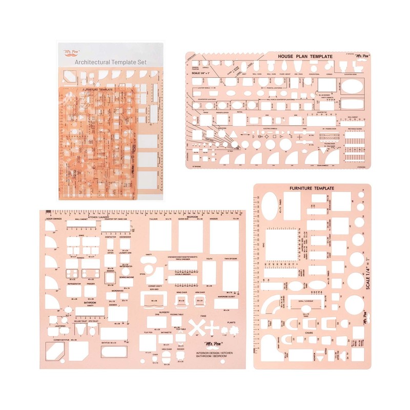 Mr. Pen- House Plan, Interior Design and Furniture Templates, Drafting Tools and Ruler Shapes for Architecture - Set of 3