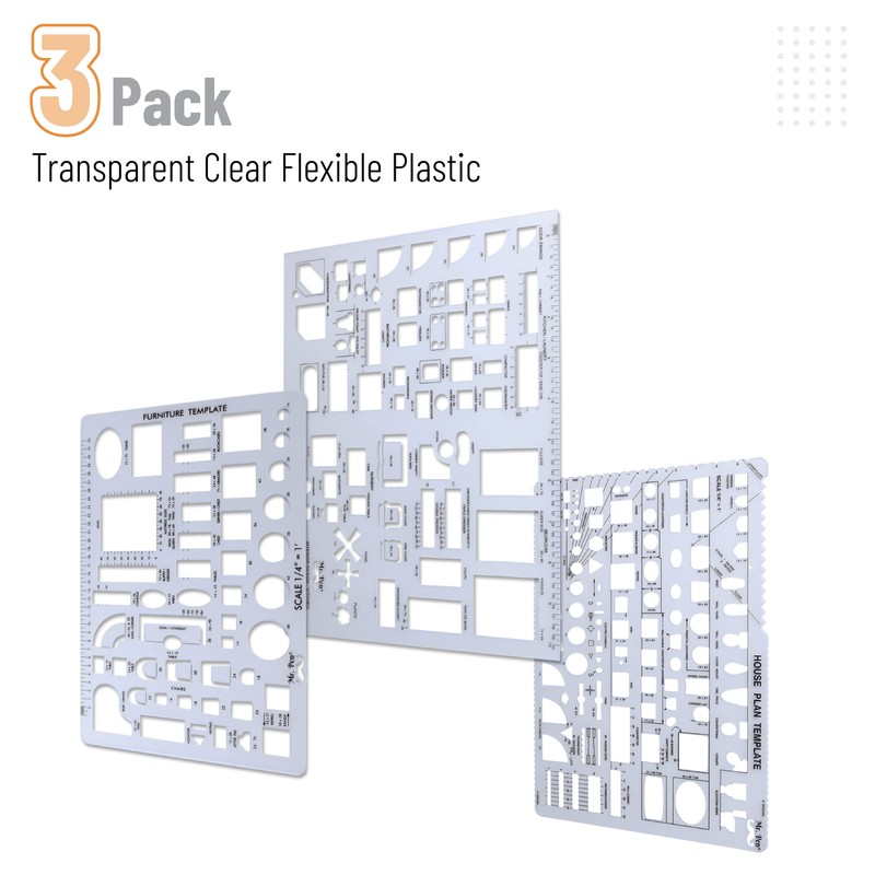 Mr. Pen- House Plan, Interior Design and Furniture Templates, Drafting Tools and Ruler Shapes for Architecture - Set of 3