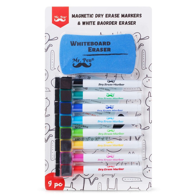 - Mr. Pen package includes 8 magnetic dry erase markers in assorted colors with 1 magnetic whiteboard eraser