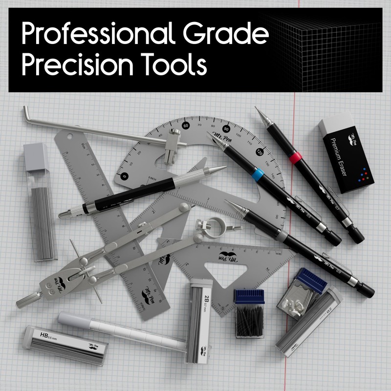 Mr. Pen- Professional Geometry Set, 17 pcs, Silver Geometry Kit for Artists, Metal Rulers and Compasses, Mechanical Pencil Set, Drafting Tools & Drafting kits