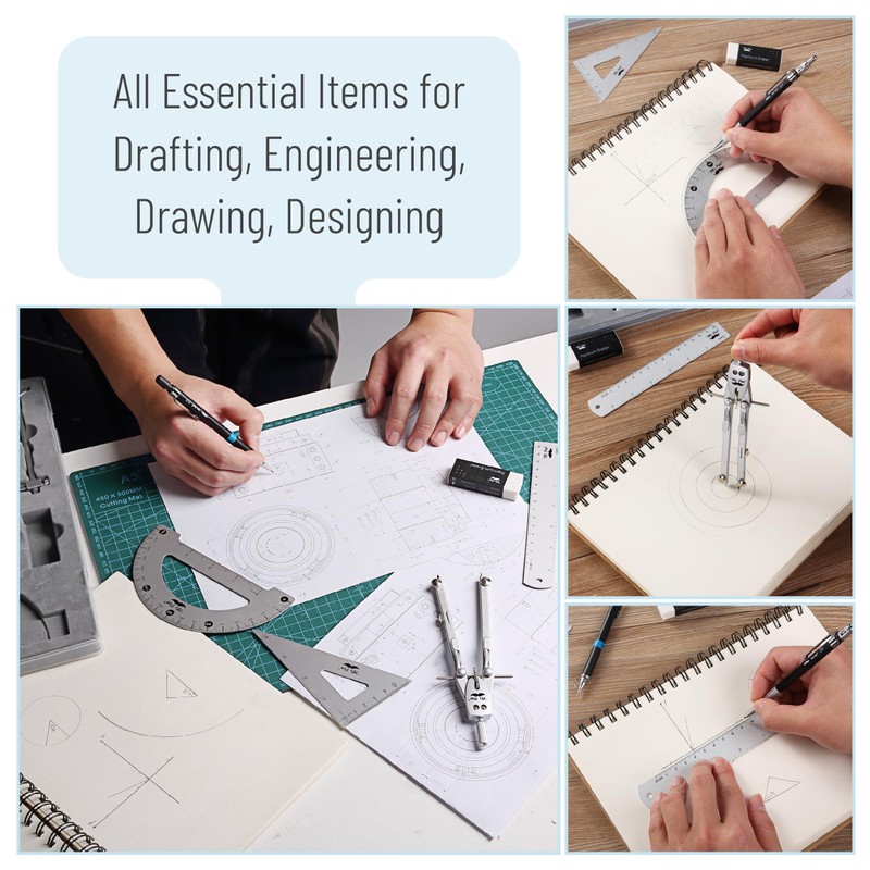 - Everything is neatly organized in a sturdy case, ensuring that all tools are secure and easily transportable, making it an ideal choice for architects, engineers, artists, and anyone who desires a reliable and comprehensive drawing toolkit.