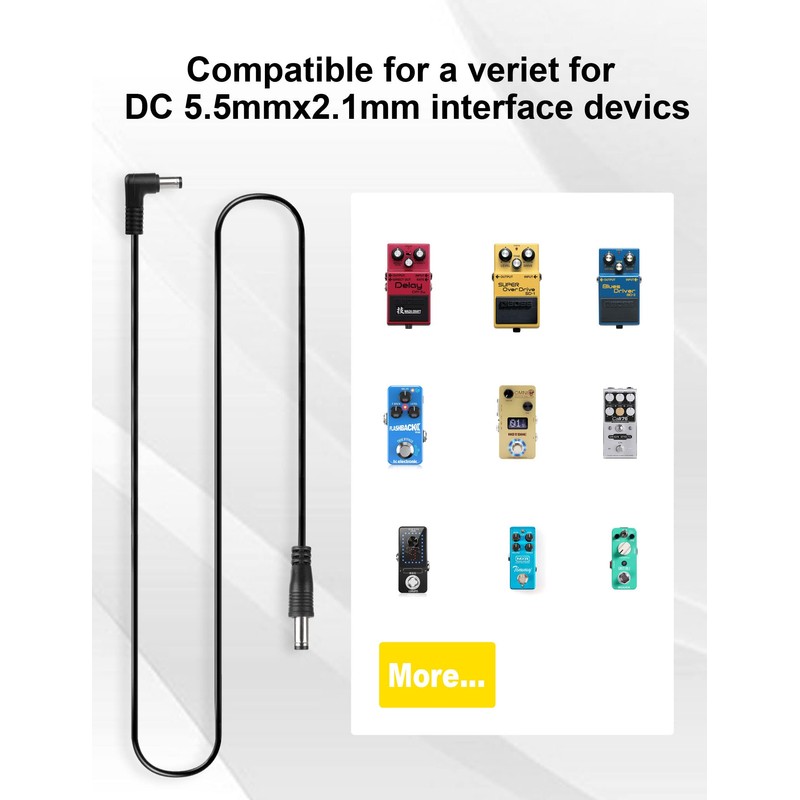Mr.Power Guitar Effect Pedal DC Cable 5.5 x 2.1mm Power Lead/Cord, Male to Male 24AWG Connector Plug Wire Adapter (32 inch, 8 Pack)