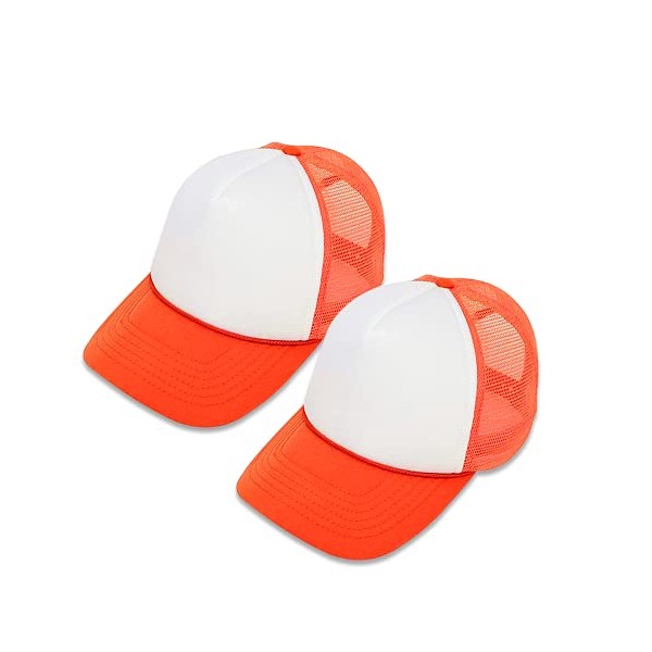 MR.R Sublimation Blank Polyester Mesh Cap Mesh Hat Two Tone Trucker Summer Mesh Cap with Adjustable Snapback,Orange,2 Pieces per Pack