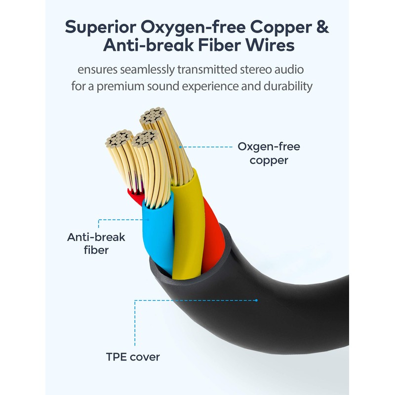 - High quality material for clear stereo sound. Mr Rex stereo audio cable is made of Oxygen-free copper and 24K gold-plate connector, ensuring high fidelity sound quality and providing maximum's durability. 135 degree angle reducing tear and wore. Special degree design, metal connector and dual-layer connector cover for longer life-span in daily heavy duty use.
