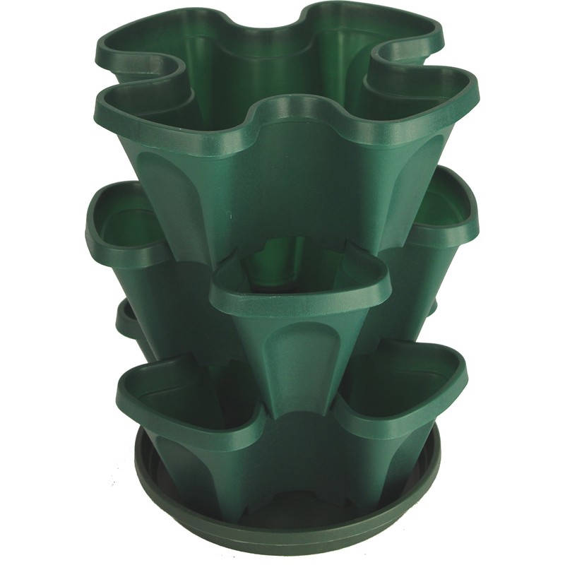 Mr. Stacky Self Watering 3 Tier Stackable Garden Vertical Plastic Planter Set, Hunter Green