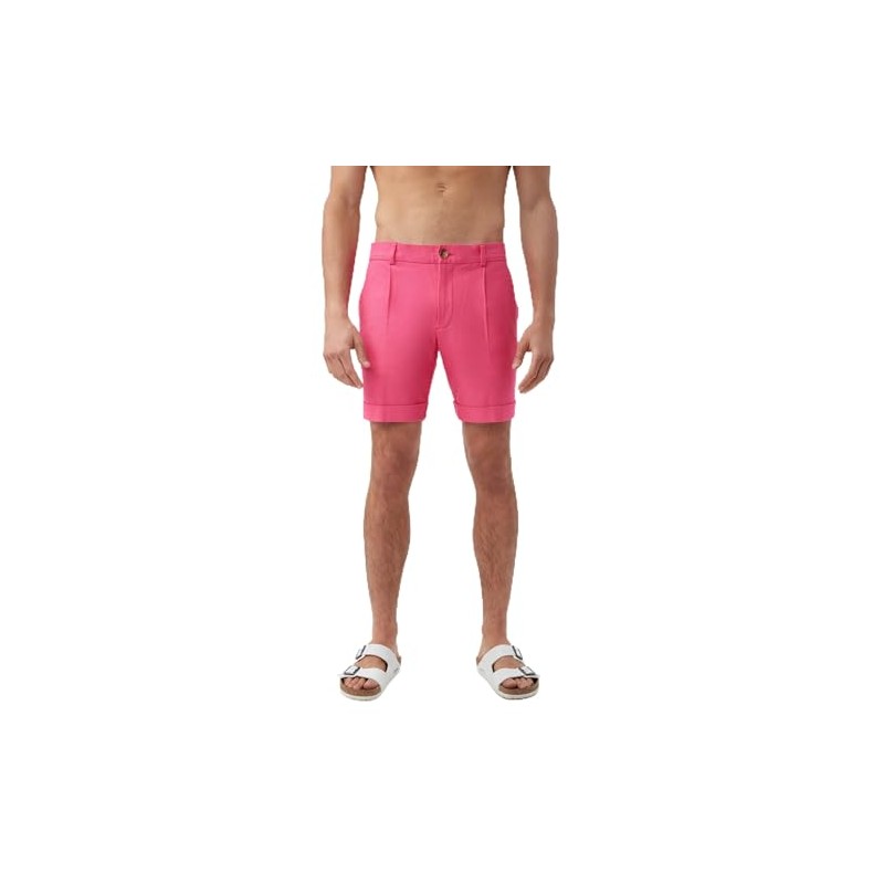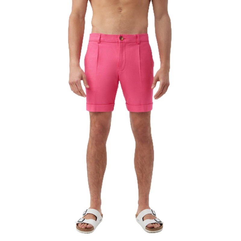 Mr Turk Men's Twill Shorts with Cuffed Hem, Pink Paradise