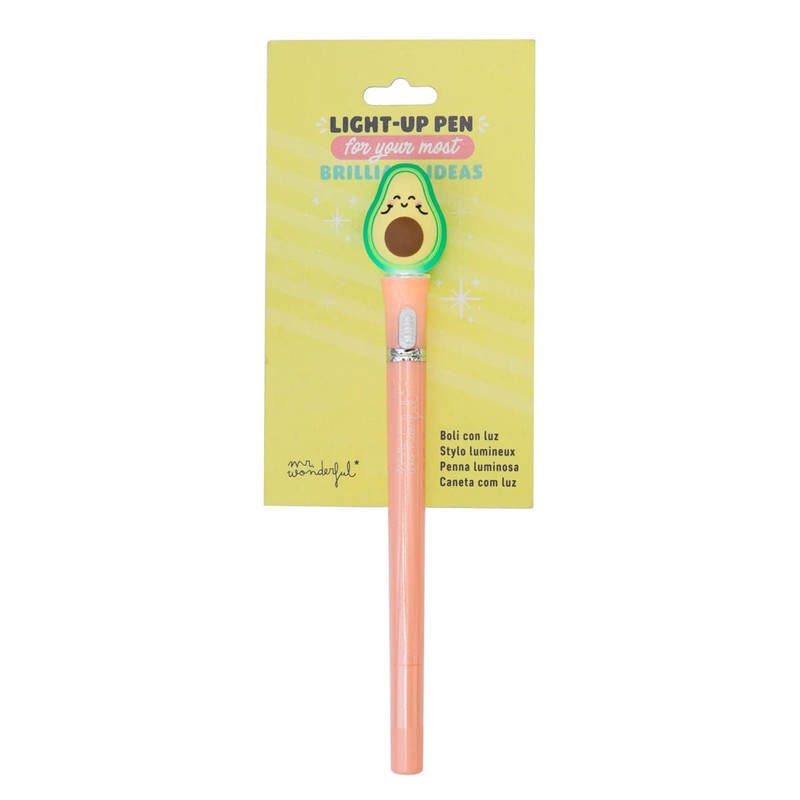 - Ballpoint pen with a Wonder Avocado at its end and light.
