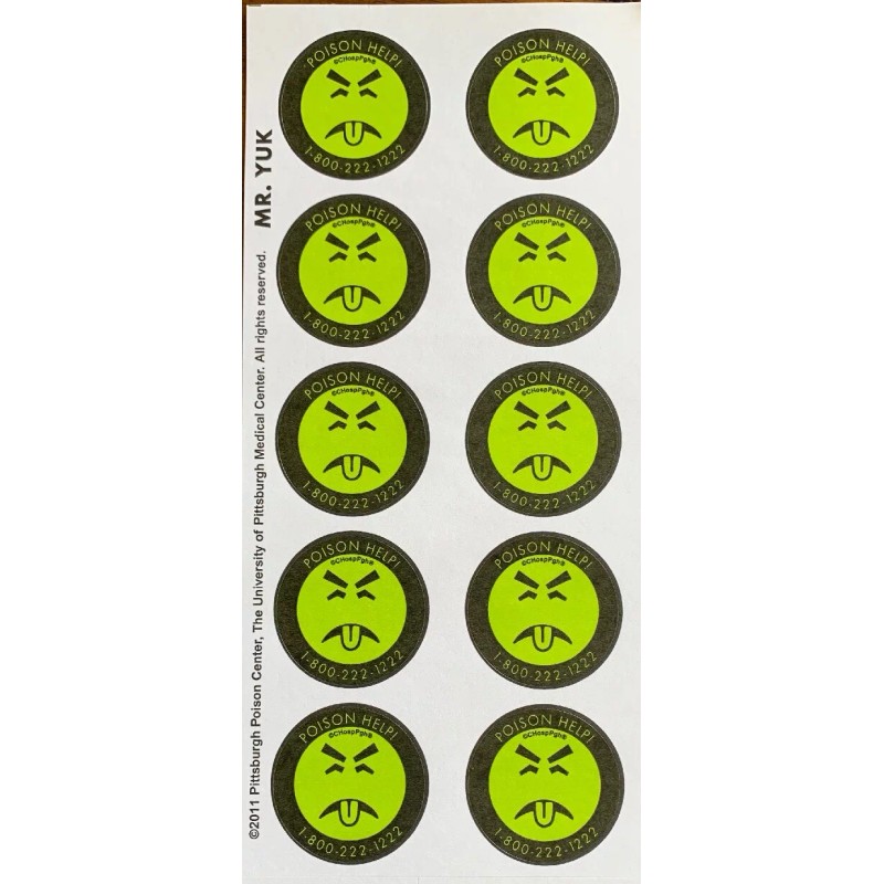 One Sheet if Authentic Mr. Yuk Stickers 1 Sheet = 10 Stickers Total- Poison Prevention