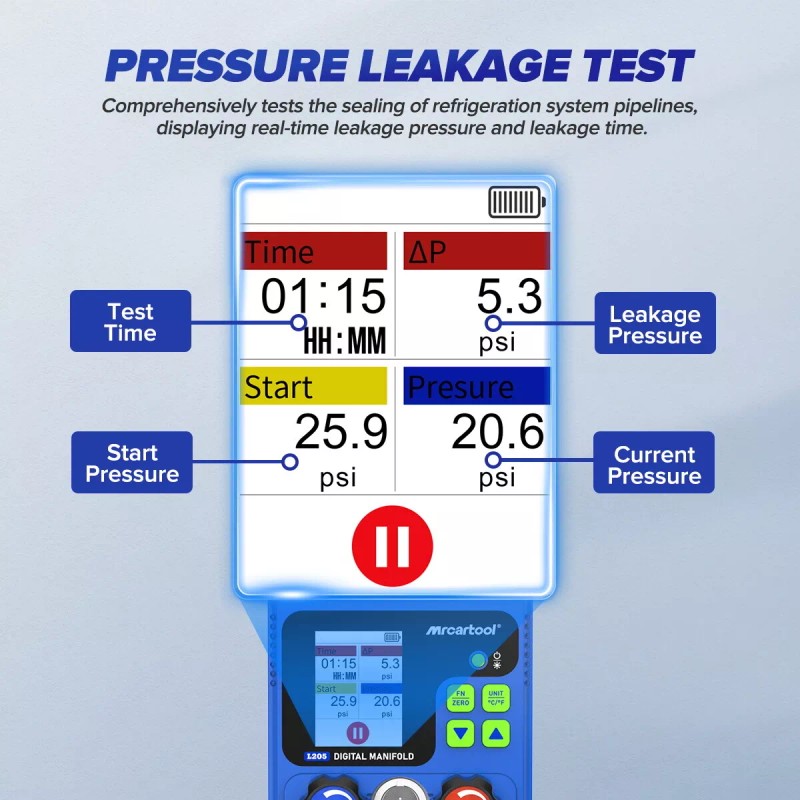mrcartool Digital Manifold Gauge HVAC 92 Refrigeration Data LCD Dual Pressure Test Gauge