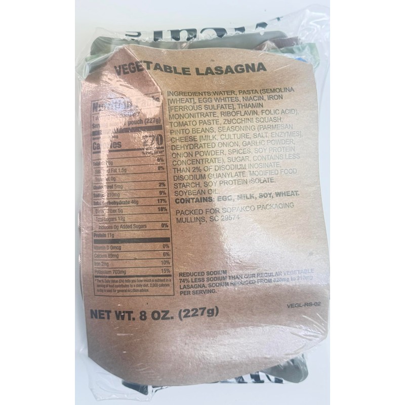 MRE Meals Ready to Eat Inspection 2025 or Better, Emergency Food Supply, Survival Camping Outdoor1 SURE-PACK MRE Meal Bag, Vegetable Lasagna)