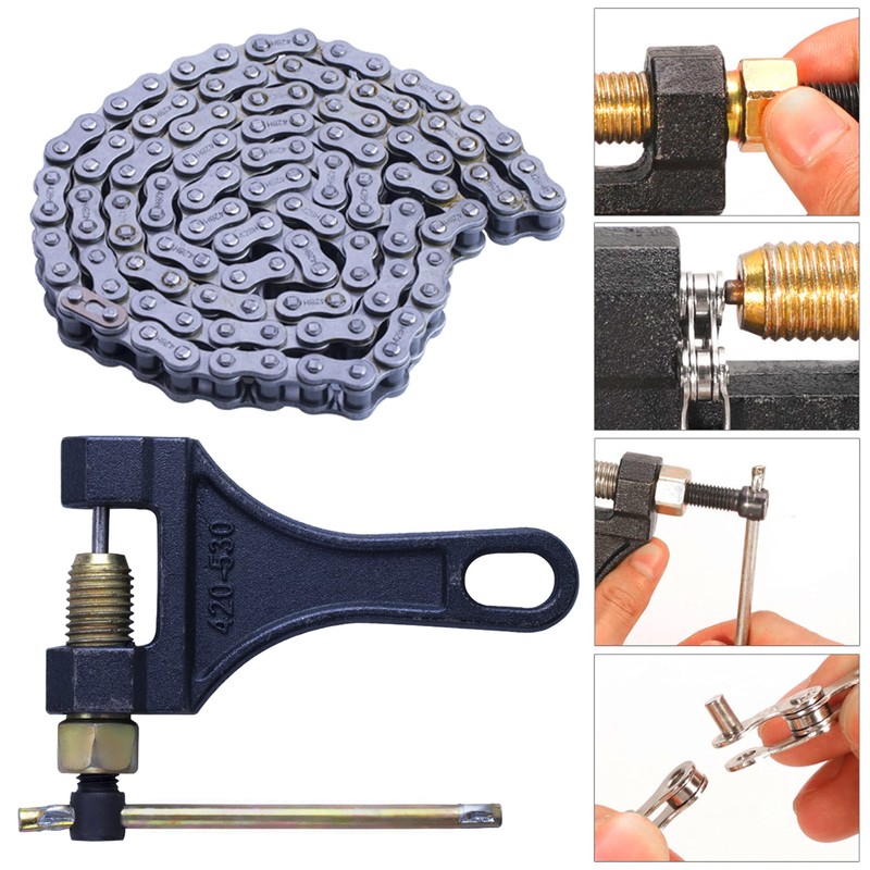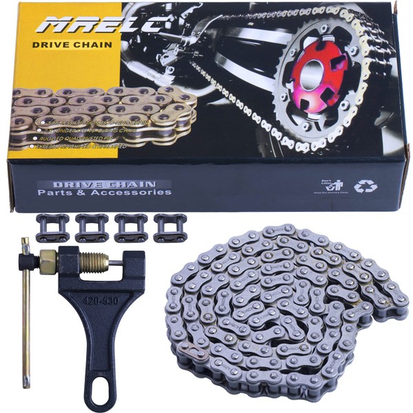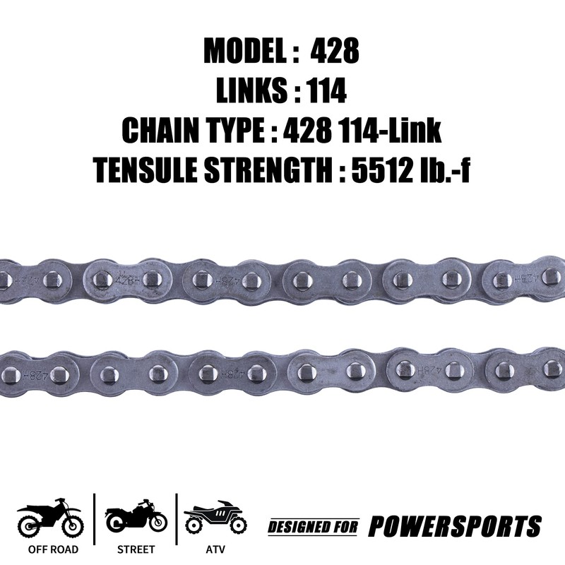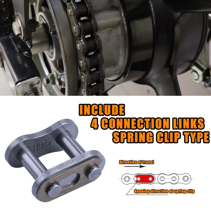- [Package including]: 1pcs 428 114-Link heavy duty drive chain ,1pcs chain breaker and 4pcs 428 Chain Connector Link.