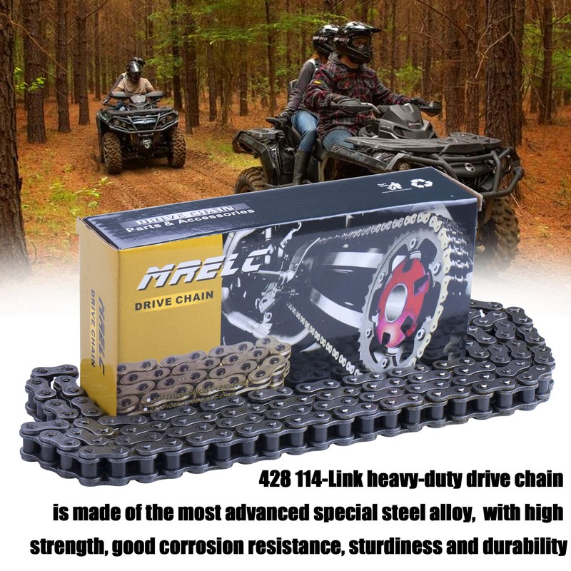 - [Premium quality]: 428 114-Link Heavy Duty Drive Chain made of highest grade of special steel alloys,High strength and good corrosion resistance , strong and durable.