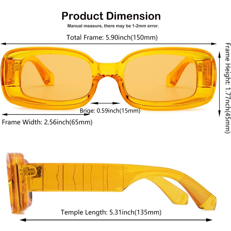 - Tinted Womans Sunglasses: These womens rectangle yellow accessories are made of premium plastic and reinforced metal hinges for a longtime comfortable wear.These cute sunglasses for women know how to turn heads while fitting comfortably and confidently on yours. You will definitely feel worthwhile after touching and comparing