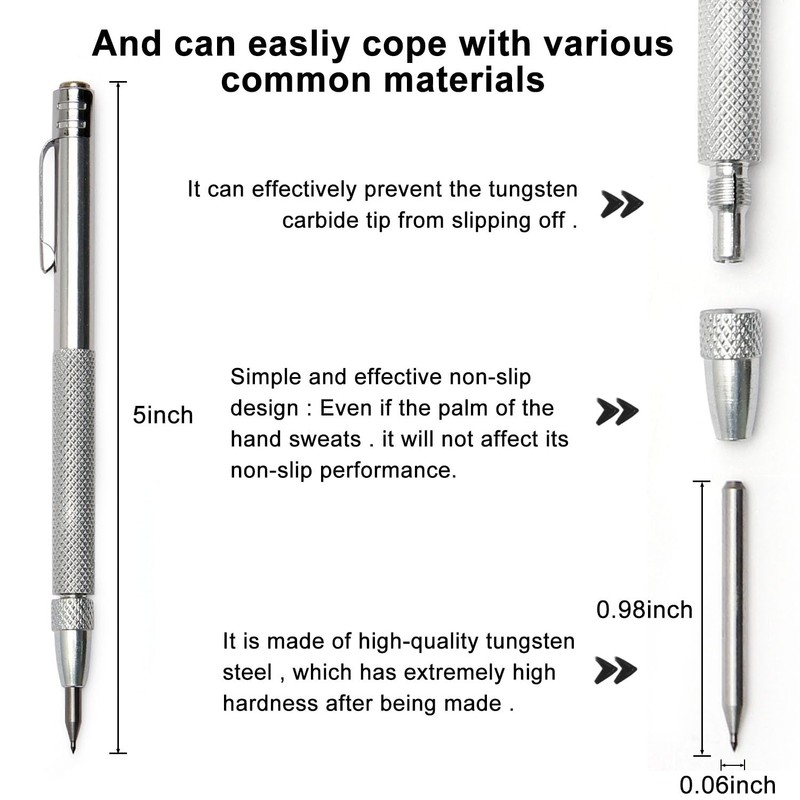 - 【Durable Materials】- The scribe pen body is nade of high-quality aluminum, and the pen tip is made of high-quality tungsten carbide, sharp, high hardness, and strong wear resistance.