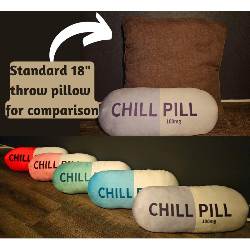 MRJ Products Chill Pill Pillow - Cervical Neck Pillow, Funny Calming Corner Classroom Must Haves Bolster Throw Pillows, College Dorm, Boho Classroom Decor, Lumbar Support, Home Office Preppy Stuff