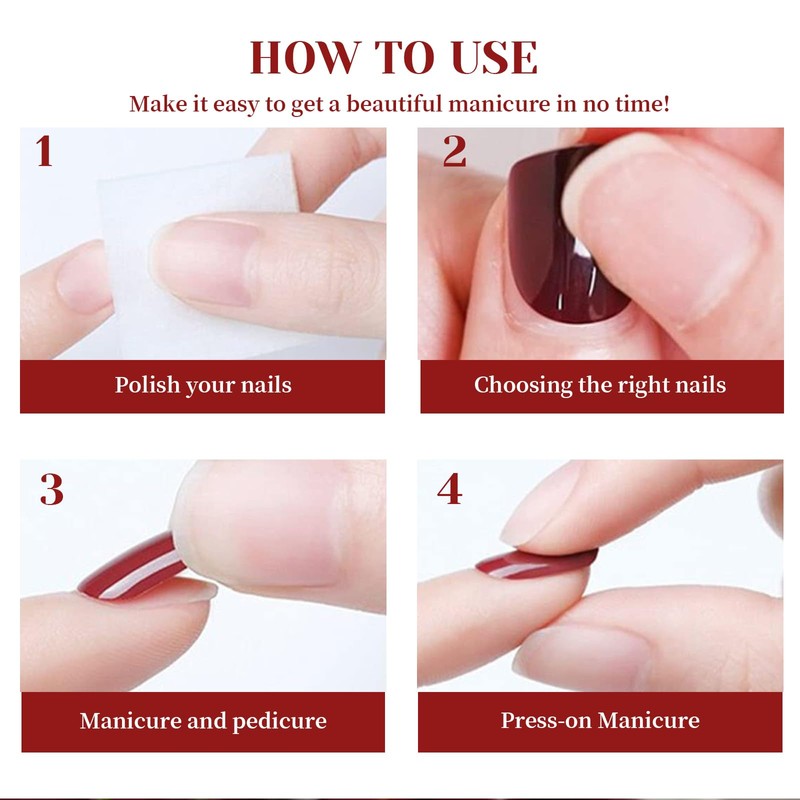 - Add a touch of elegance to your everyday life with these press-on nails in stylish red. The French style design with fake nails to stick on provides a cute and elegant look, perfect for dating, birthday parties and Valentine's Day. With these stick on false nails, you will attract everyone's attention!