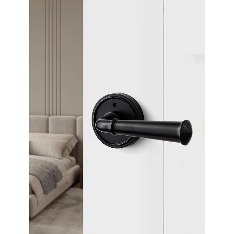 MRML Black Privacy Door Handle, Interior Bedroom Bathroom Black Door Lever, Aluminium Alloy Handle Lever, 1 Pack