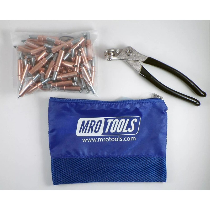 MRO Tools Cleco Fasteners 50 1/8 Cleco Sheet Metal Fasteners + Cleco Pliers with Carry Bag